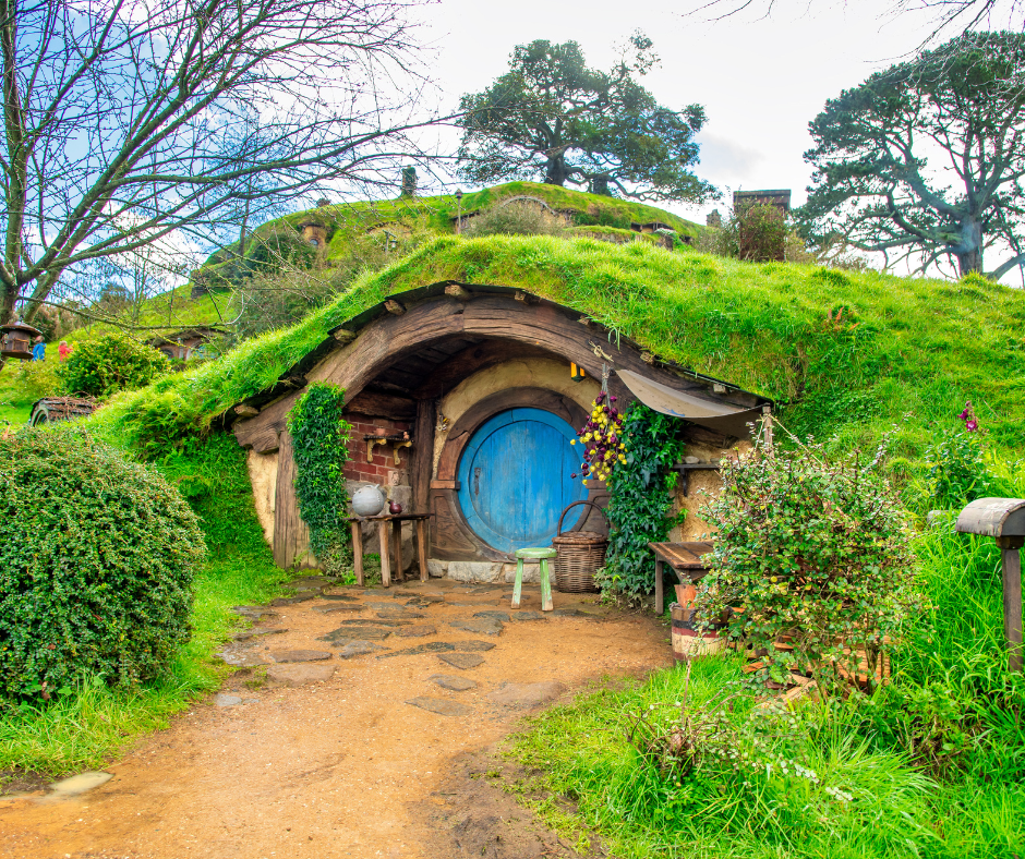Then it’s off to the Hobbiton Movie Set, nestled in the rolling hills of Matamata. Walk among Hobbit Holes, see Bag End, and toast your visit with a Southfarthing Ale at the Green Dragon Inn.