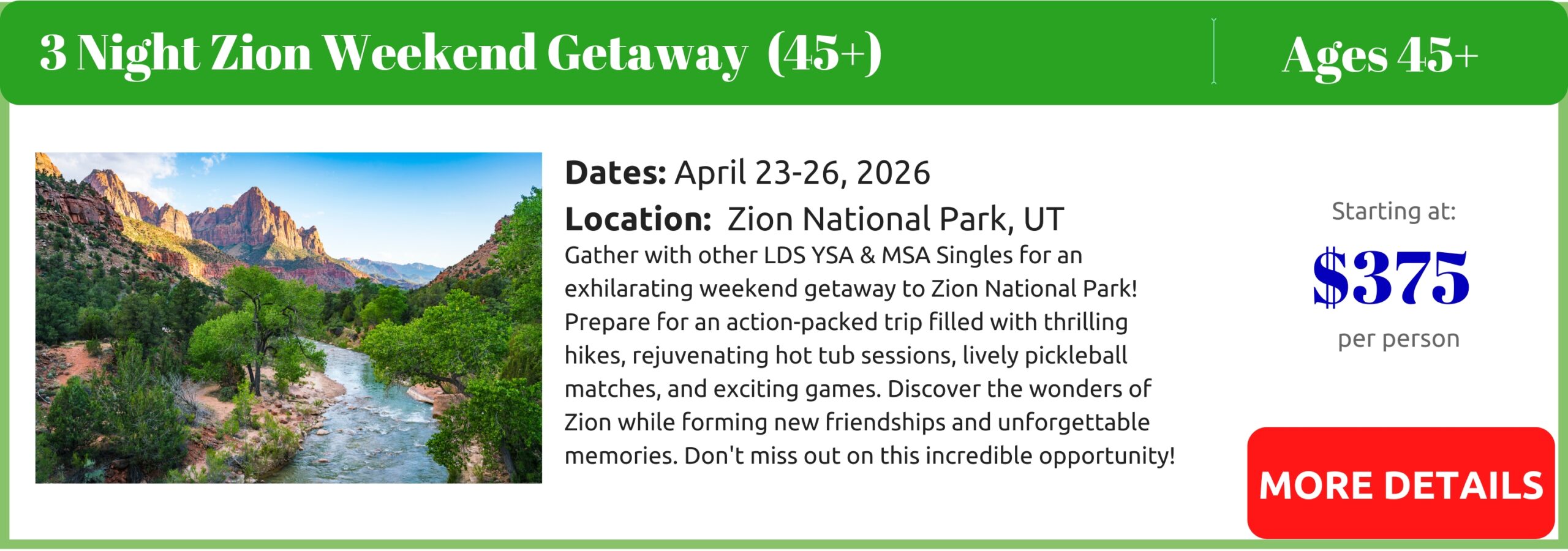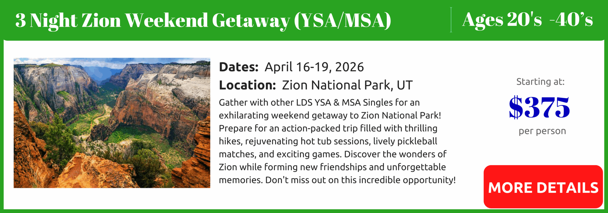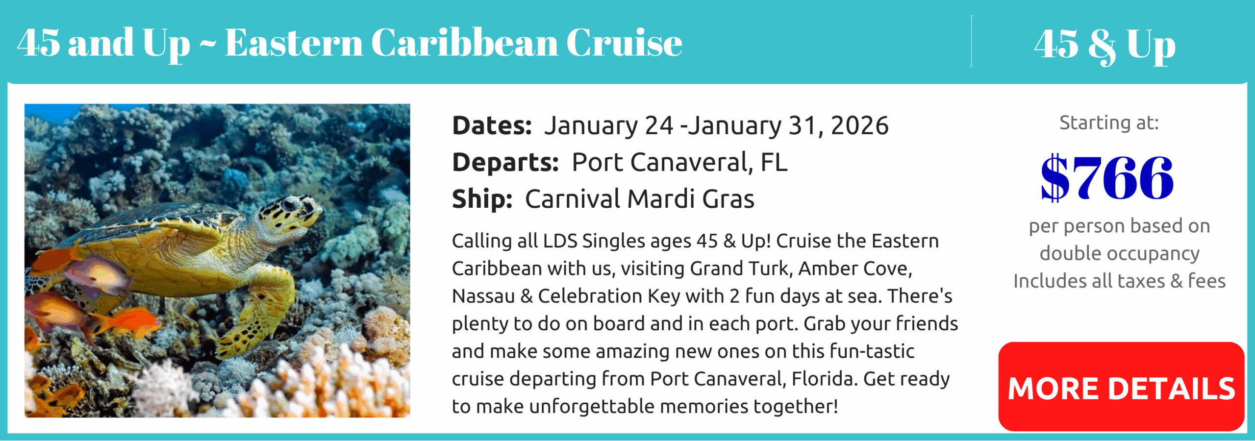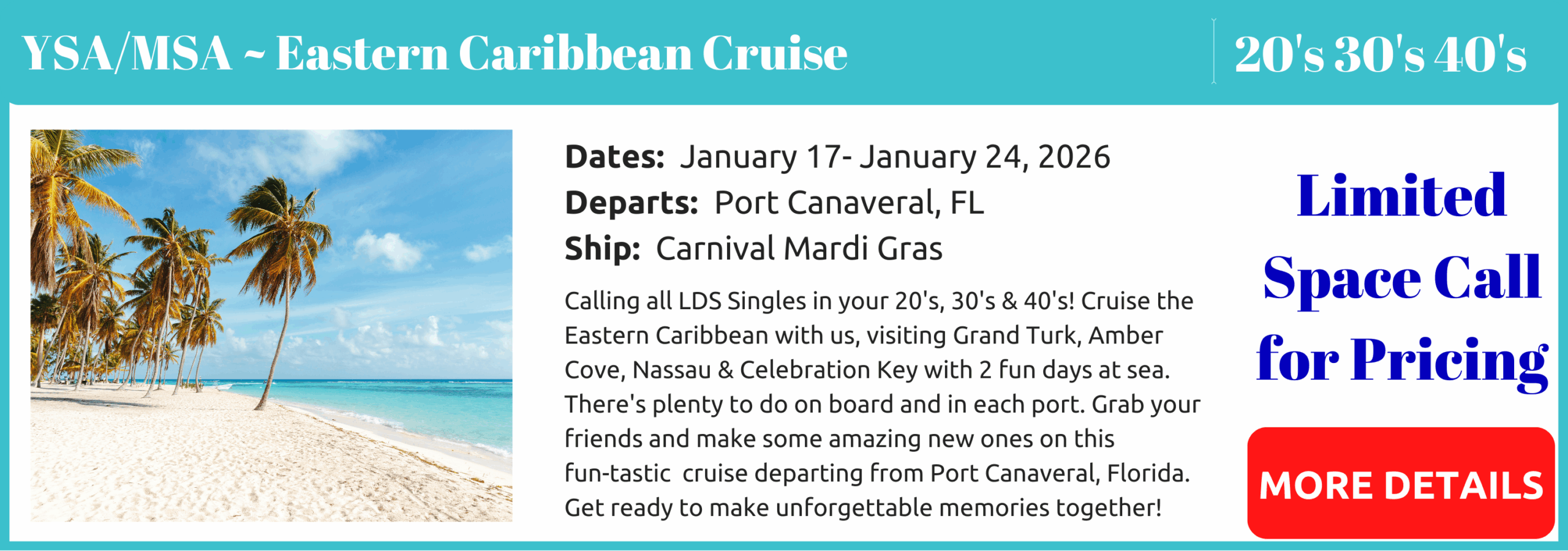 Get ready for the ultimate LDS Singles getaway! Dive into unforgettable adventures and forge lifelong friendships. Join our hosted vacations bursting with excitement, from heart-pounding themed nights to exhilarating game nights and dance parties that ignite the night. Click on our upcoming trips to discover what awaits you. Start living your bucket list today!